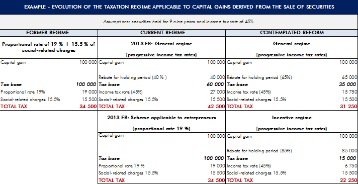 The contemplated new rules have a dual aim: simplifying the taxation of capital gains derived from the sale of securities and encouraging risk-taking and long-term investment.