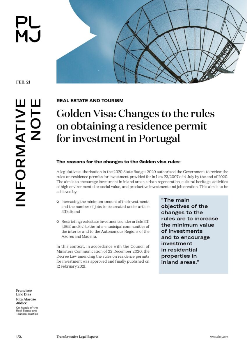 In this context, in accordance with the Council of Ministers Communication of 22 December 2020, the Decree Law amending the rules on residence permits for investment was approved and finally published on 12 February 2021.