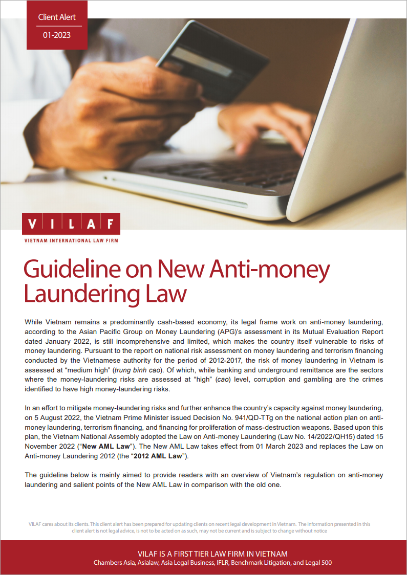 The guideline mainly aims to provide readers with an overview of Vietnam’s regulation on anti-money laundering and salient points of the New AML Law in comparison with the old one.