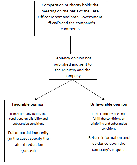 As the immunity or fine reduction is proportionate to the company’s contribution to proving the case, the eligibility conditions for immunity from or reduction of fines varies depending on the quantity and quality of the information that the “repentant” company may provide to the Authority on the alleged cartel. Please see the following table for details on the conditions of eligibility and substantive conditions that the company must meet to make a plea for leniency (I). Further, the plea for leniency is subject to a strict procedure before the Competition Authority (II).