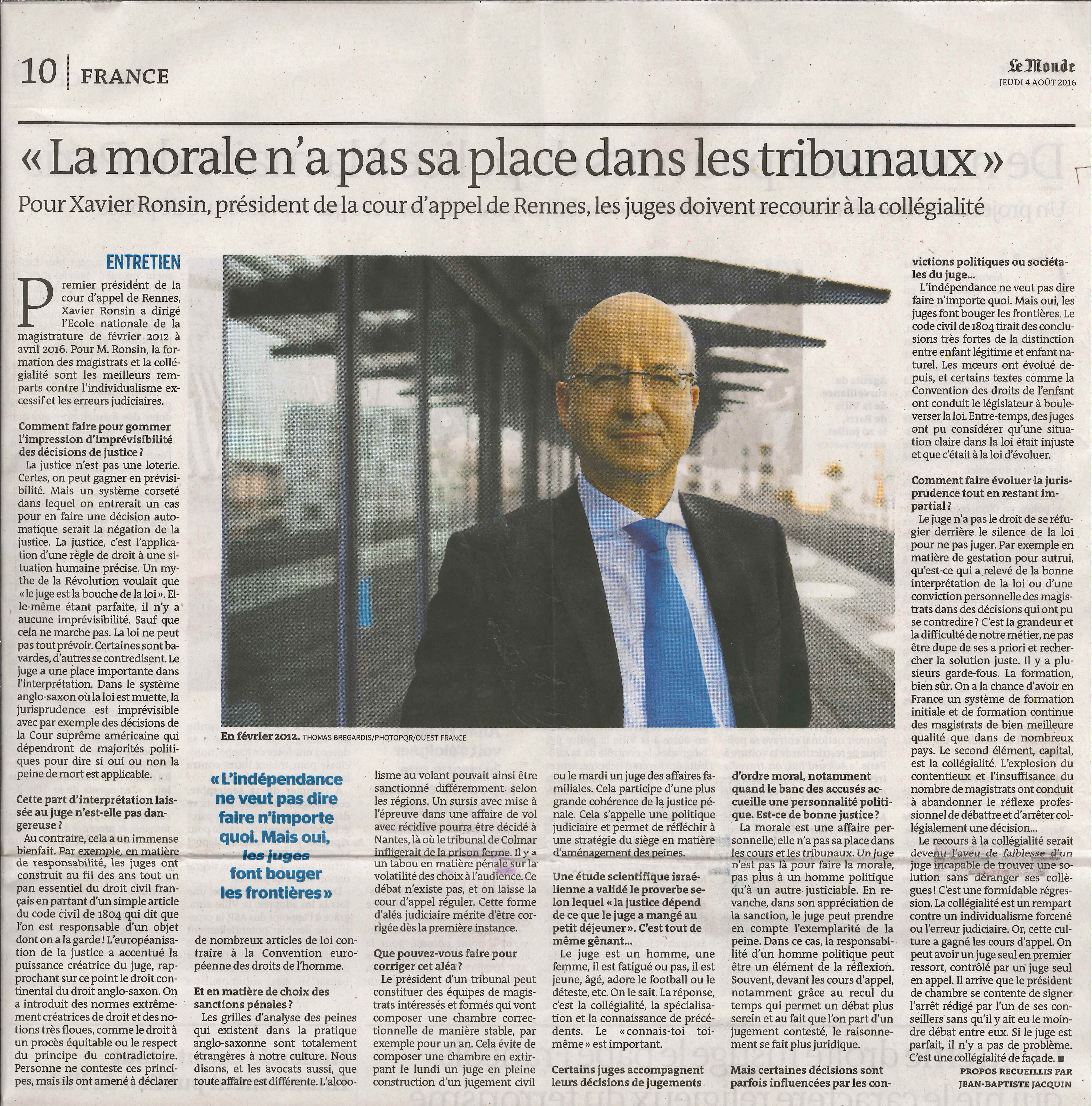While the title of the interview “Moral judgments have no place in court” may seem a little abrupt, the First President of the Court of Appeals of Rennes further explains that: